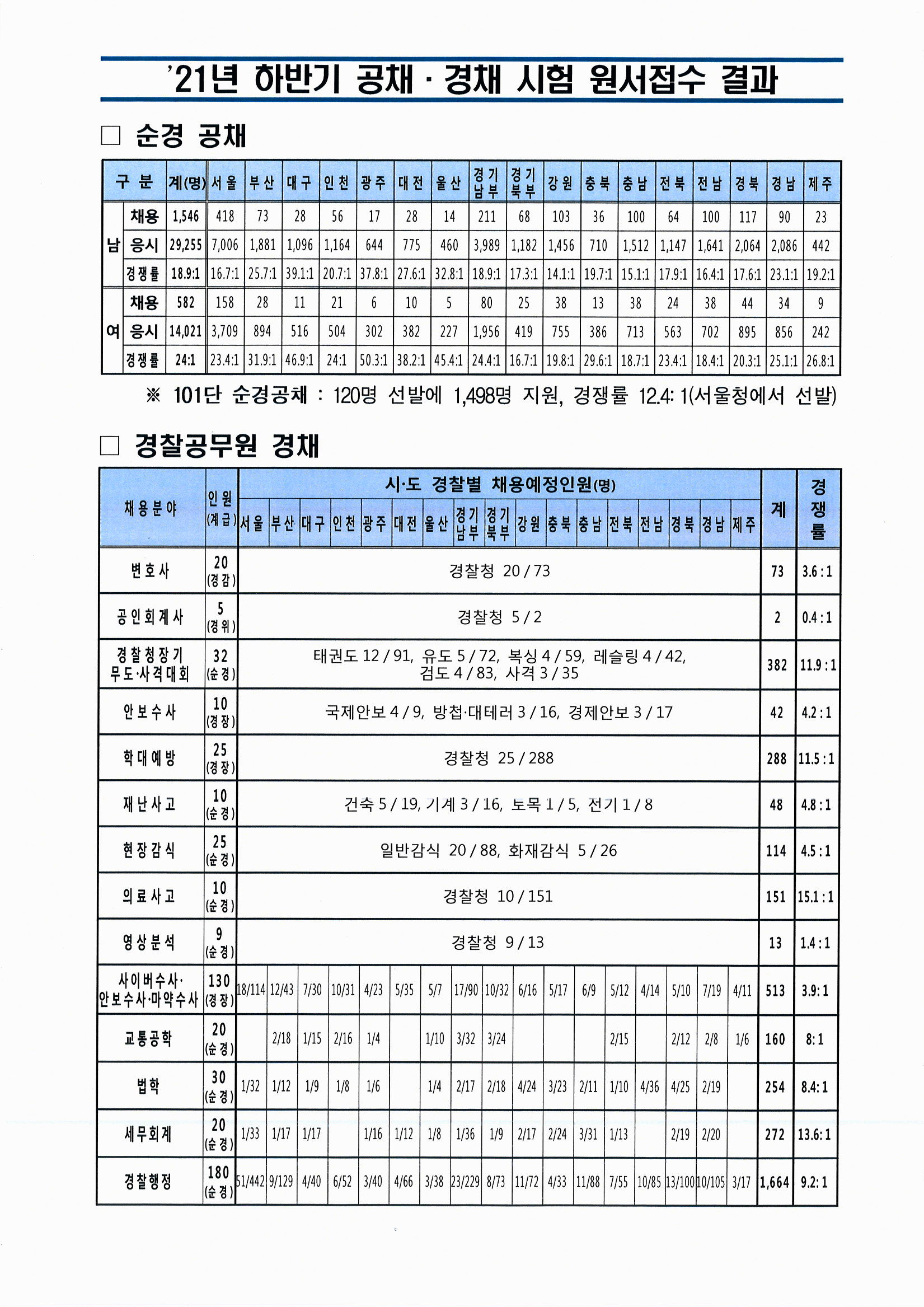 2021년 하반기 공채_ 경채 원서접수 결과 입니다.