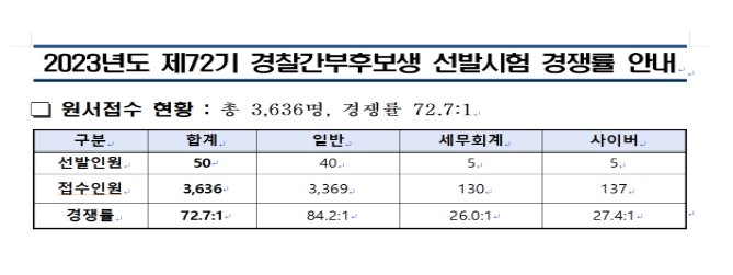 글제목 :      제72기 경찰간부후보생 모집 필기시험 경쟁률 안내