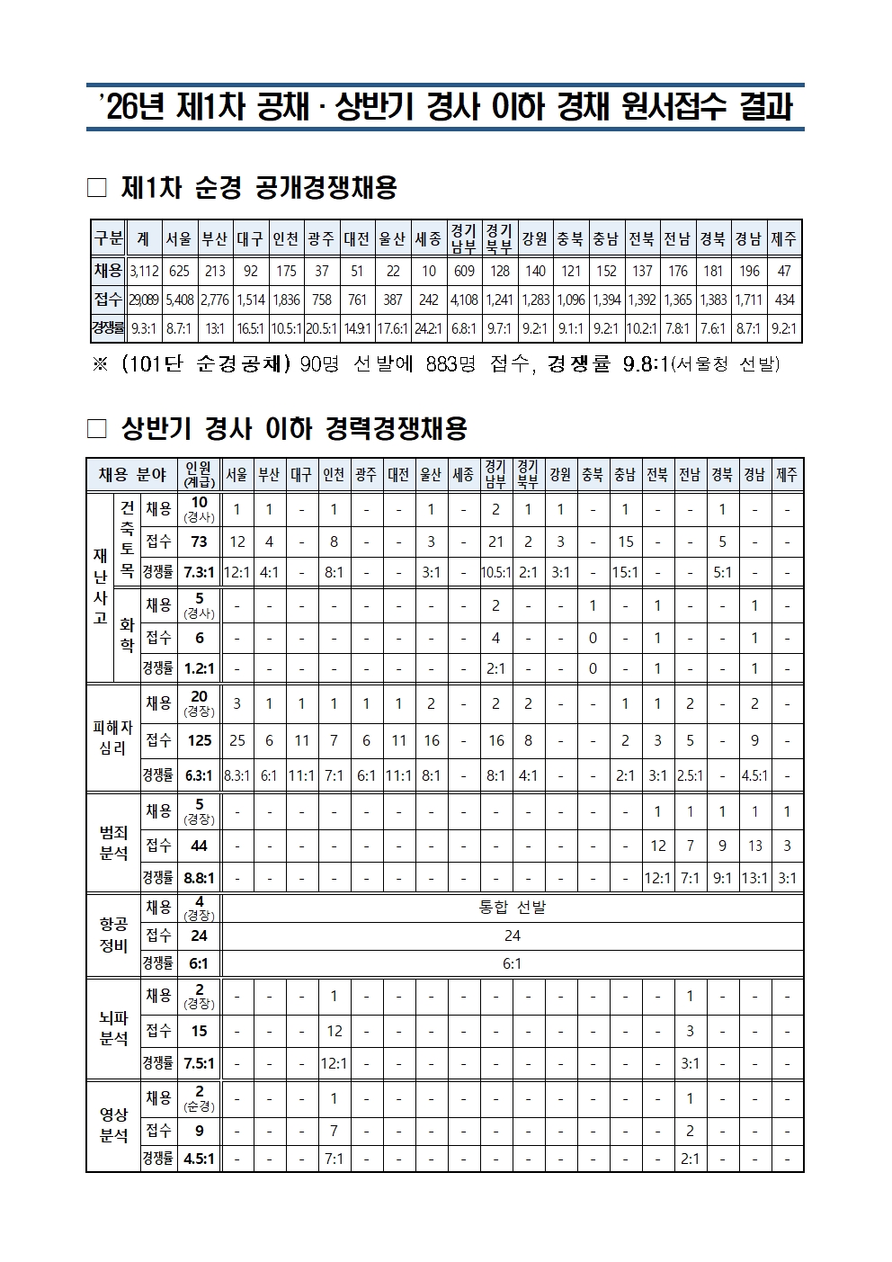 첨부파일 :     Downloading : 2 - (게시용)’26년 상반기 공채·경채 시험 원서접수 결과 보고.jpg