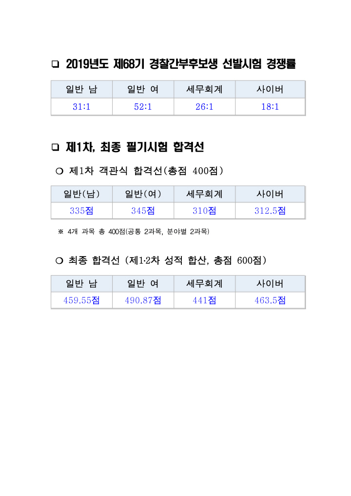 글제목 :      2019년도 제68기 경찰간부후보생 선발 필기시험 합격선 공지