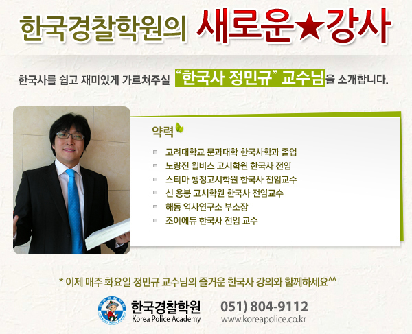 글제목 :      한국경찰학원의 새로운 한국사 교수님을 소개합니다.