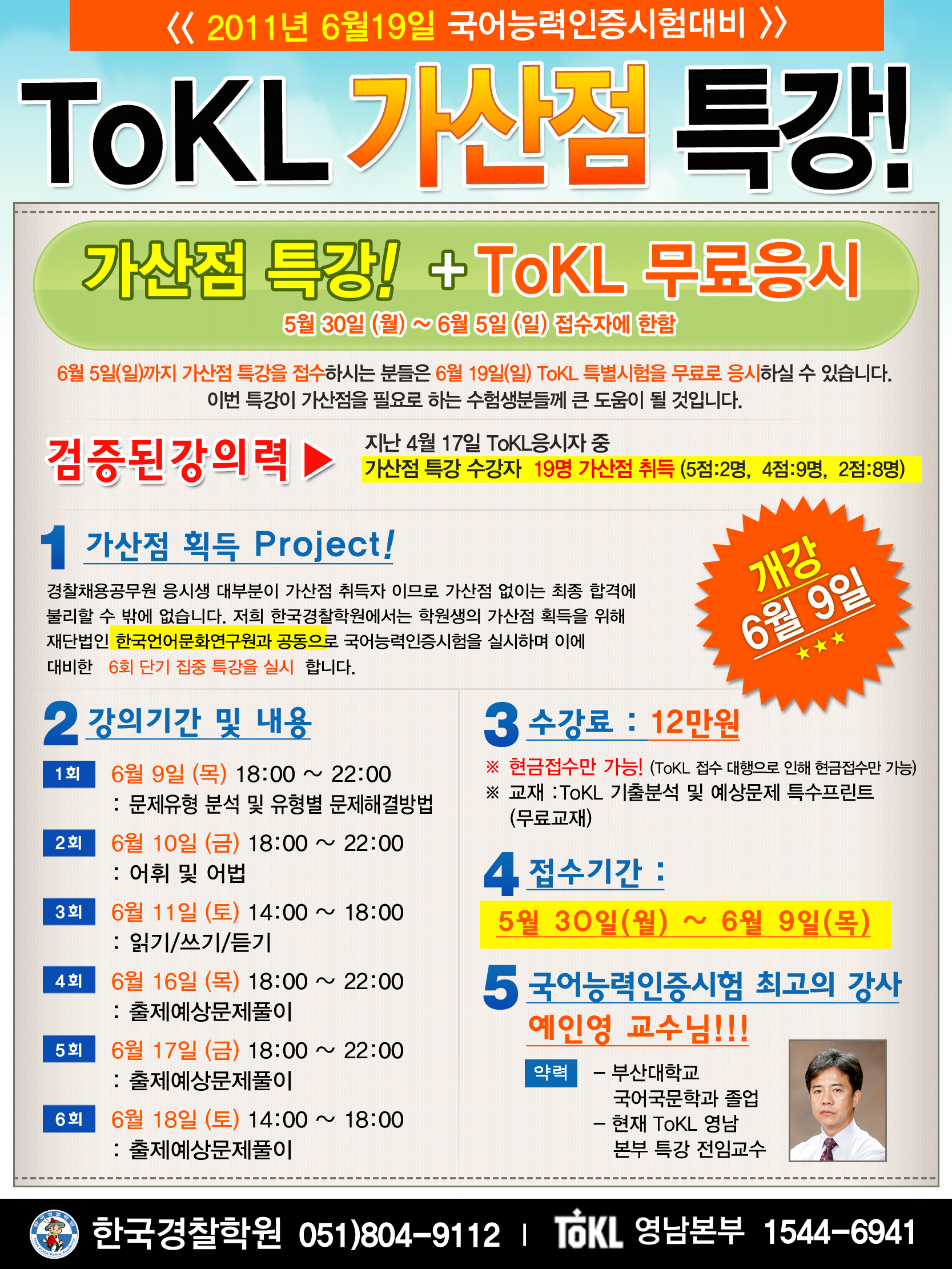 글제목 :      [국어능력인증시험] 6월 19일(일) 특별시험 대비 가산점 특강 안내