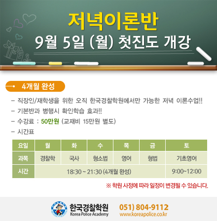 글제목 :      ★ 9월 5일 저녁이론반 대개강!!
