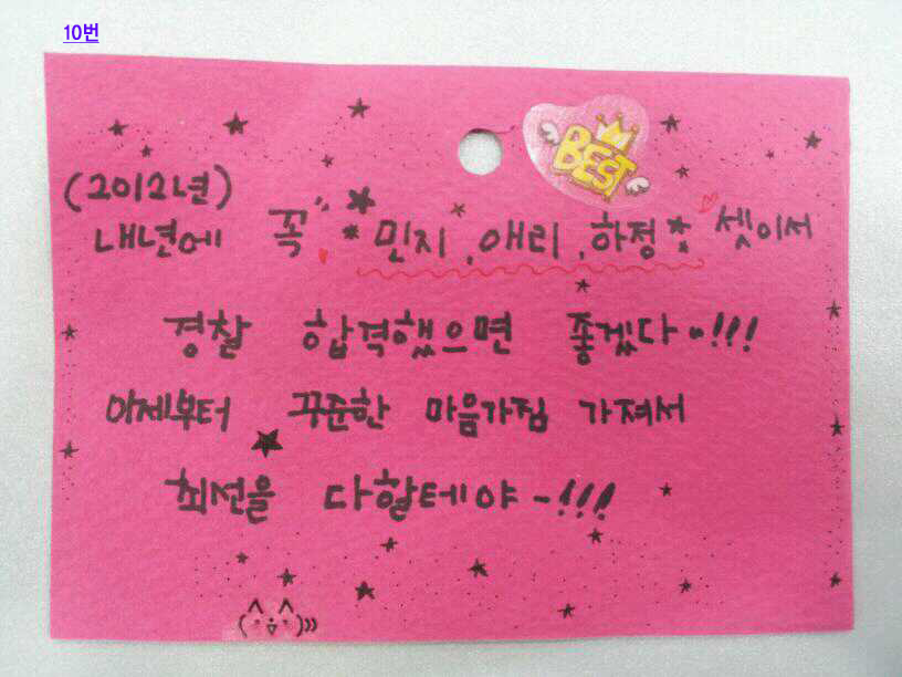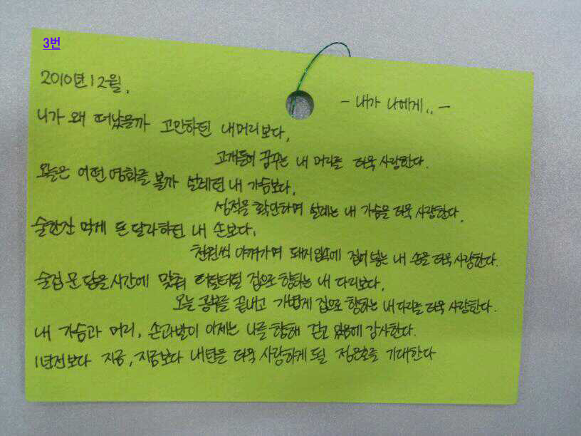 따뜻한 마음 보여주신 여러분 모두 2012년에 좋은 결과가 있길 진심으로 기원합니다.