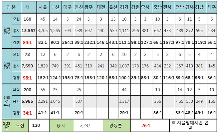 글제목 :      2012년 2차 경찰공무원 시험 각 지역별 경쟁률