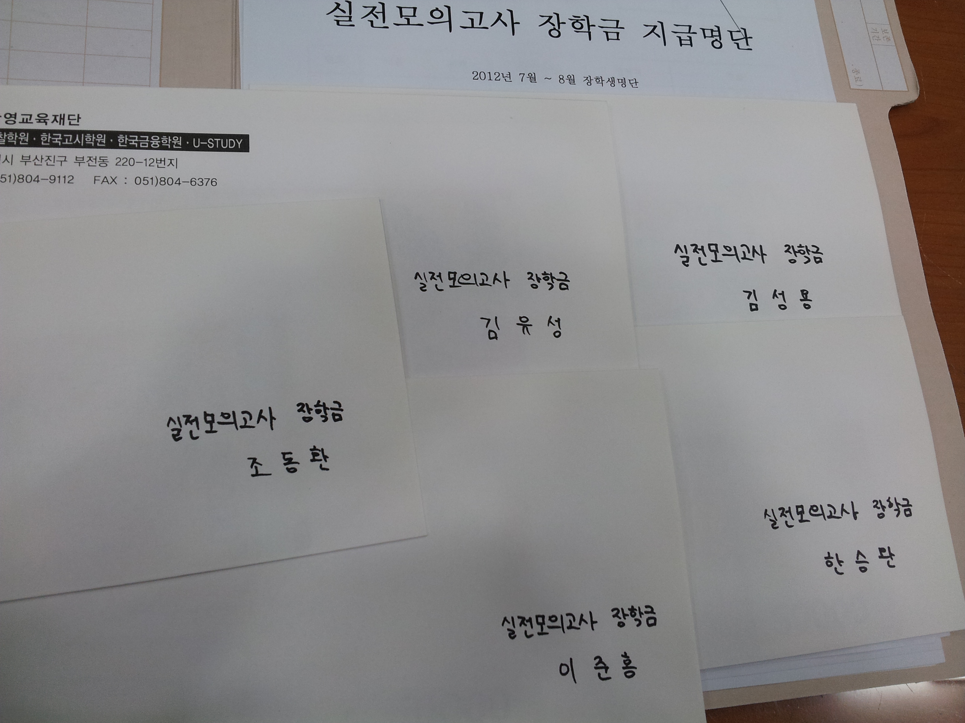 지난 7~8월에 진행되었던 실전모의고사 장학생 명단입니다.