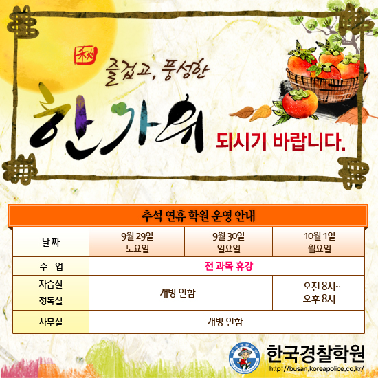 글제목 :      ★ 추석연휴 학원 운영 안내