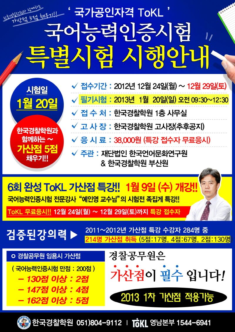 2013년 경찰공무원 시험 대비 가산점을 위한 국어능력인증시험 안내입니다.