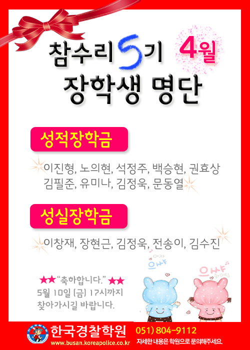 '축하합니다.~' 4월 new 참수리5기 장학생 명단