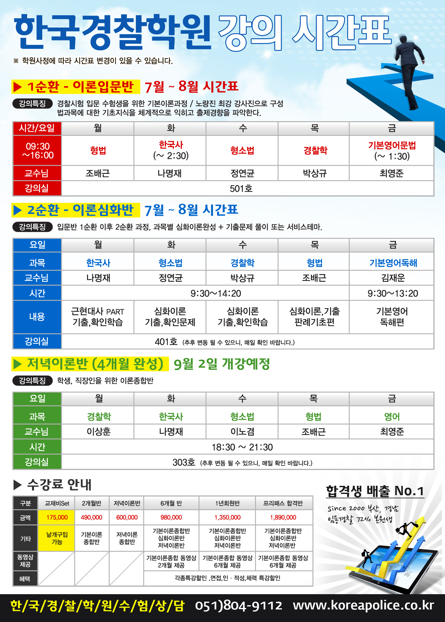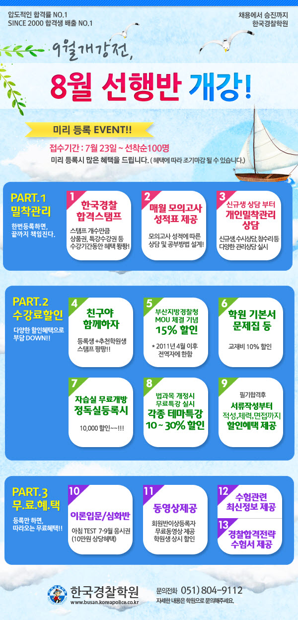 글제목 :      ★“ 7월 1일(월) 전과목첫진도 개강!!”★ 한국경찰학원13주년기념 이벤트