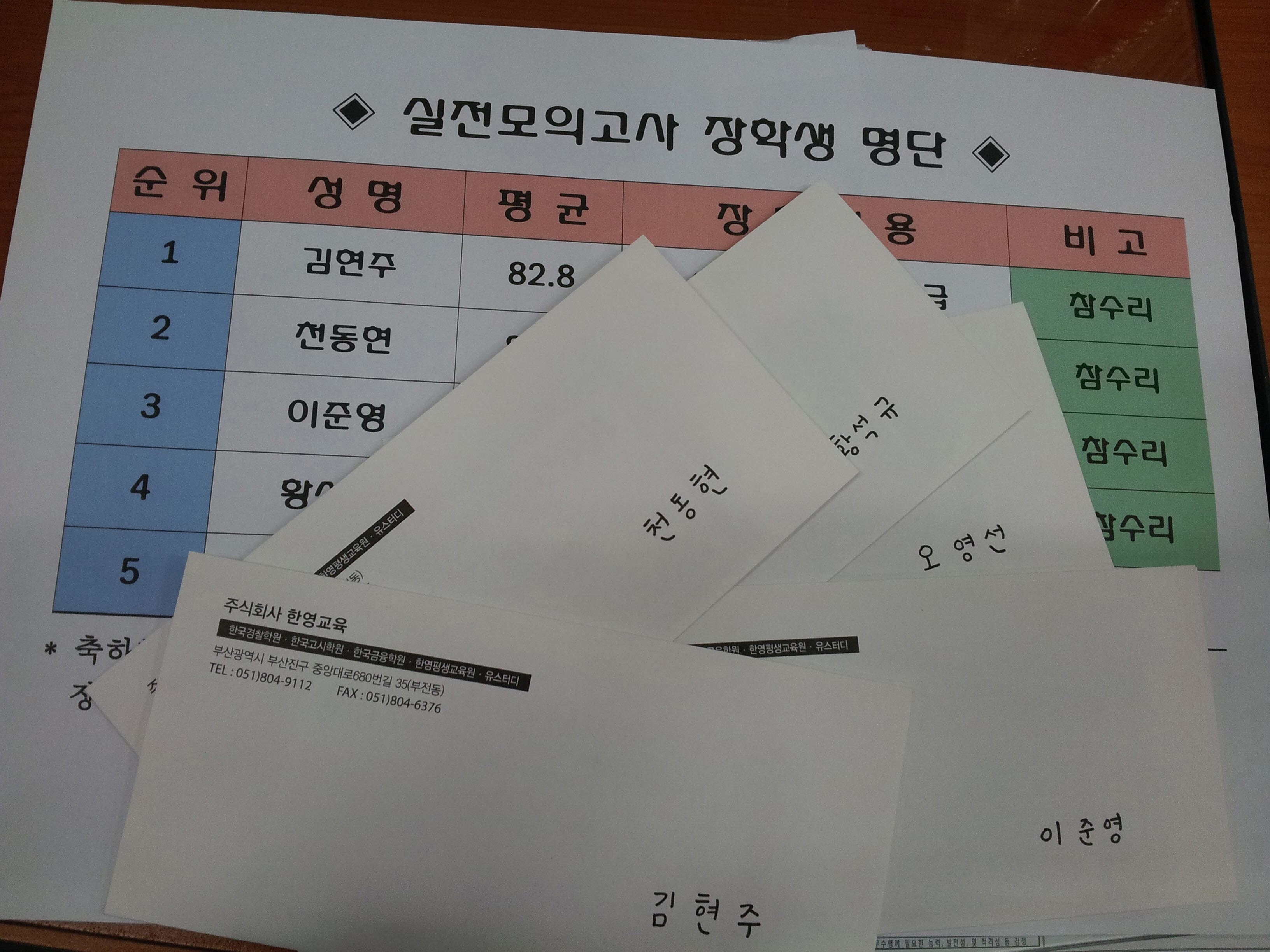 2013년 7~8월 실전모의고사 장학생 명단입니다.