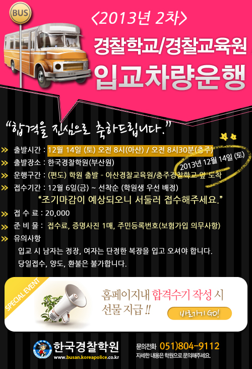 [안내] 2013- 2차 최종합격생 충주경찰학교 입교버스