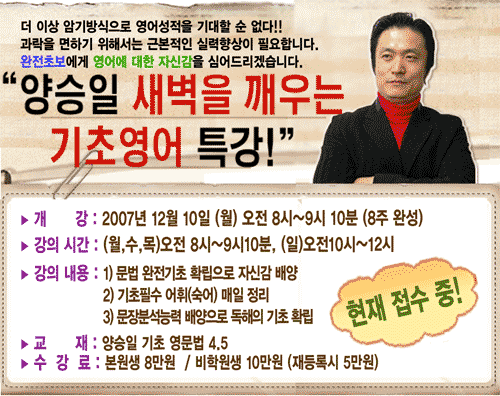 글제목 :      양승일 새벽기초영어특강 개강 안내