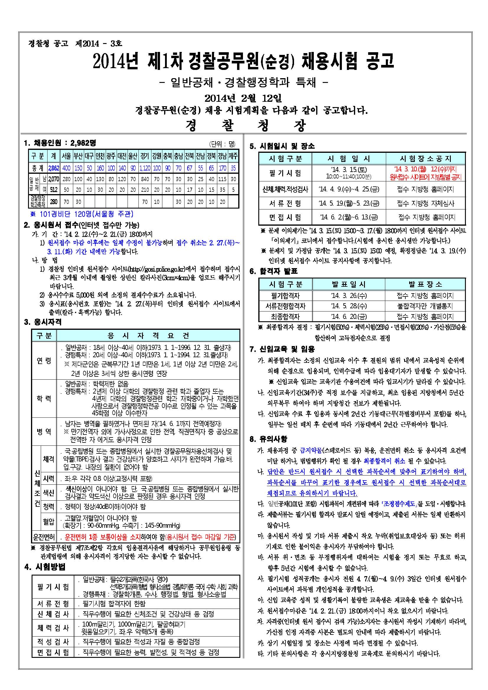 첨부파일 :     Downloading : 87 - 2014년_1차_경찰공무원(순경)채용시험_공고문.jpg