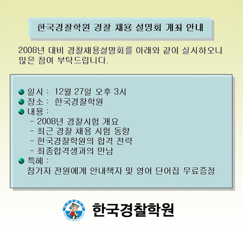 글제목 :      2008년 12월 27일 경찰채용설명회 개최 안내
