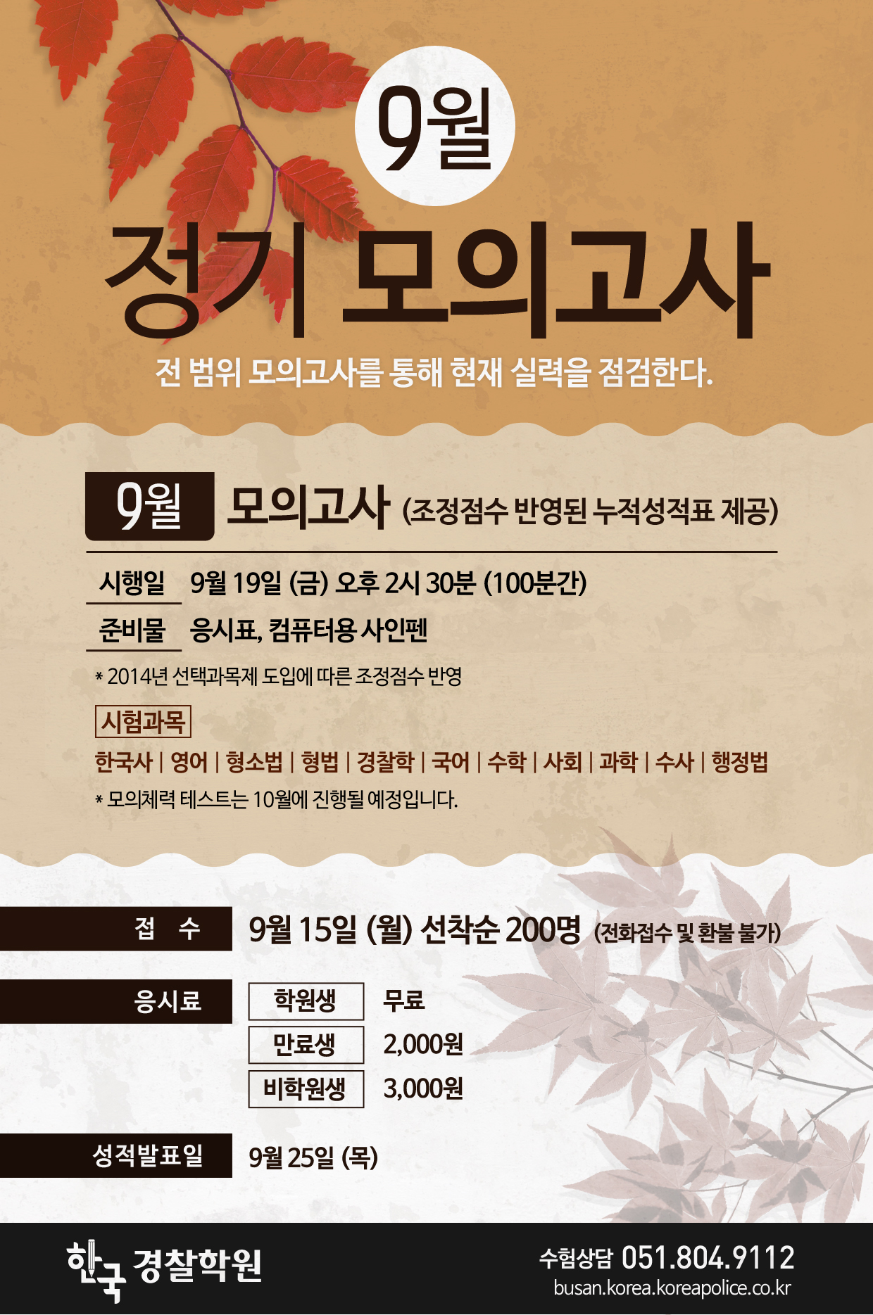 9월 모의고사 접수 안내입니다.