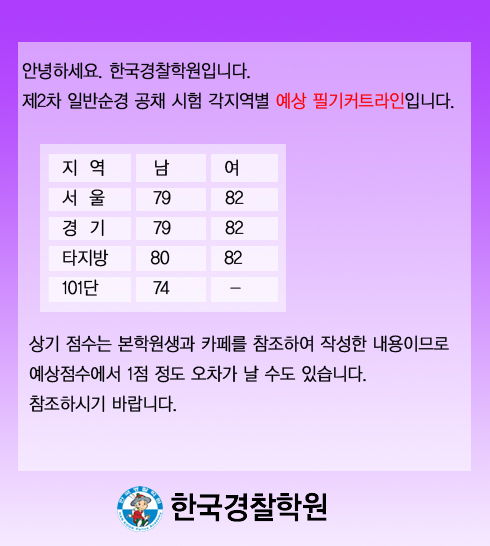 07년 2차 일반 순경 공채 예상 커트라인입니다.