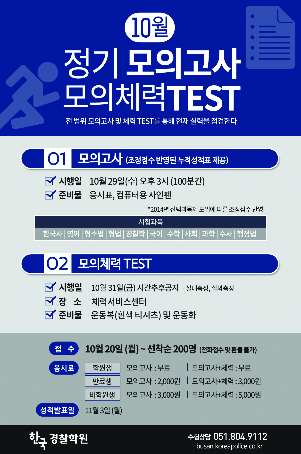 10월 모의고사 및 모의체력시험 접수 안내입니다.