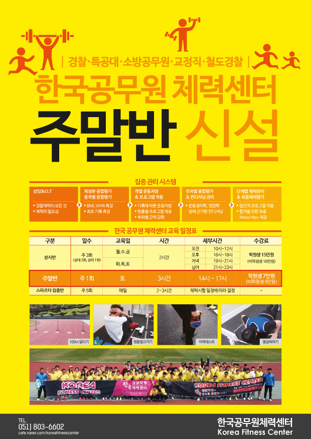 글제목 :      한국공무원체력센터 주말반 신설 안내!
