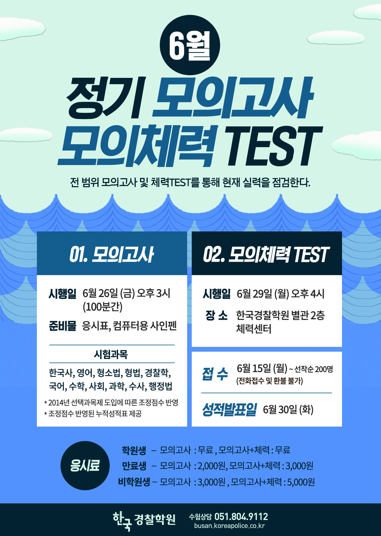 6월 모의고사 및 모의체력시험 접수 안내입니다.