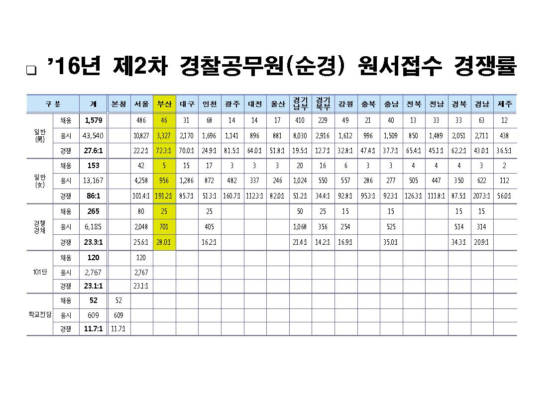 '16년 순경2차 원서접수 마감 결과를 붙임과 같이 공지합니다.
