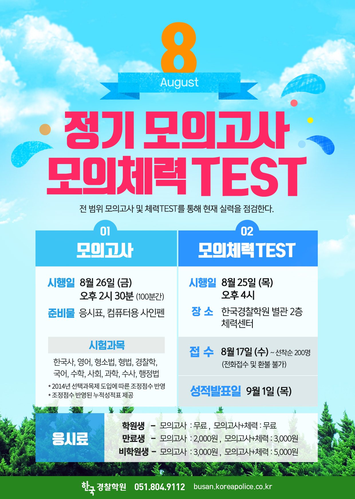 8월 모의고사 및 모의체력시험 접수 안내입니다.