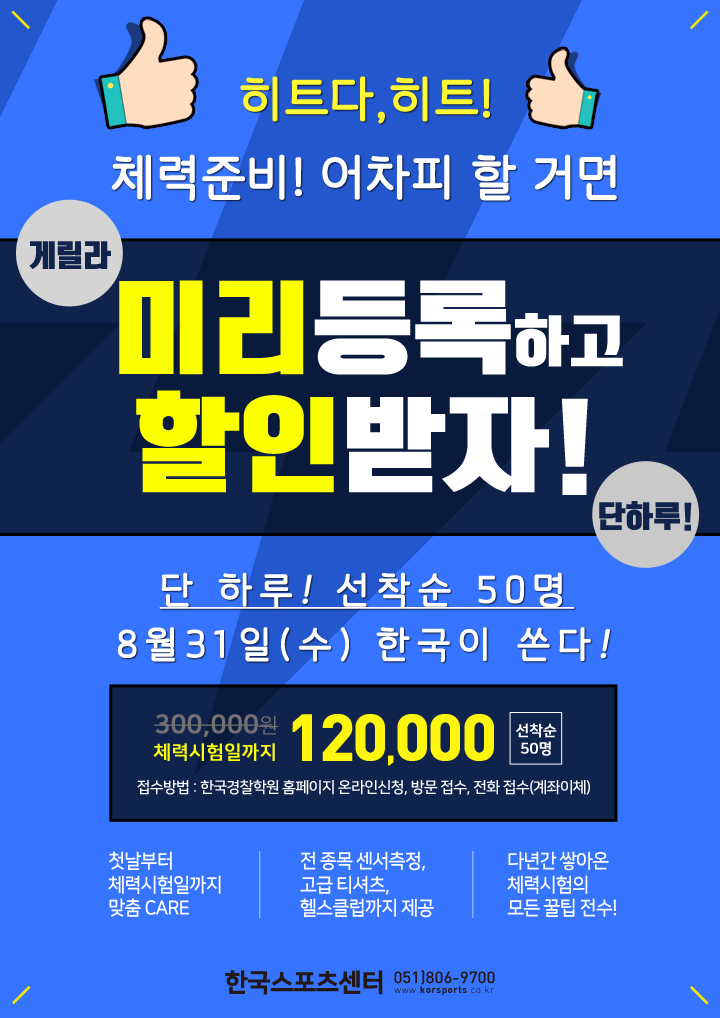 체력준비! 미리 등록하고 할인받자! 8/31(수) 단하루!