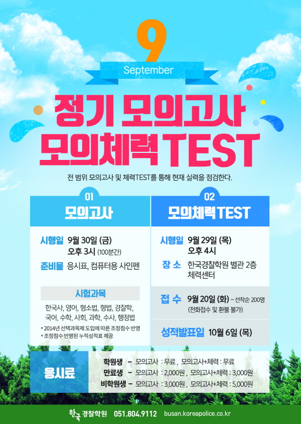 9월 모의고사 및 모의체력시험 접수 안내입니다.