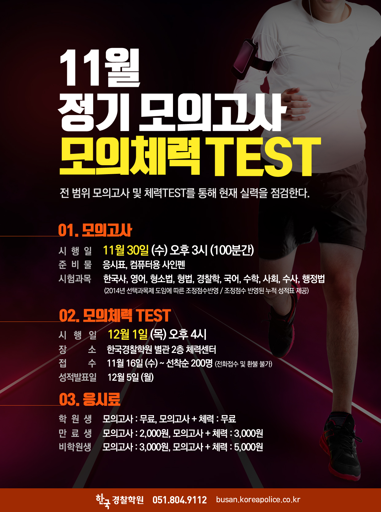 11월 모의고사 및 모의체력시험 접수 안내입니다.