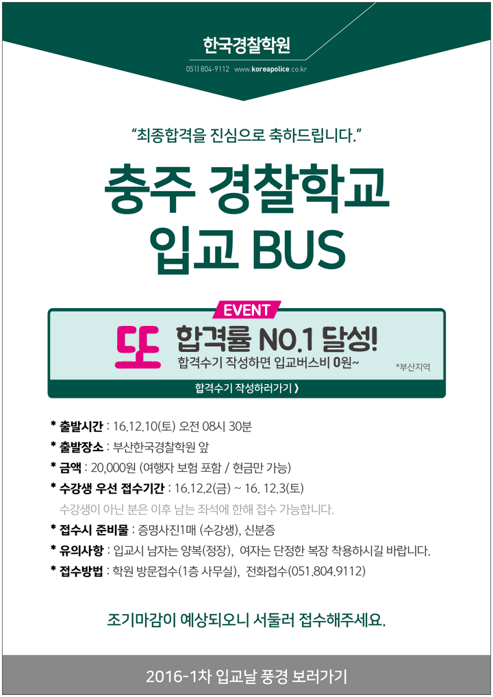 글제목 :      [안내] 2016-2차 최종합격생 충주경찰학교 입교버스