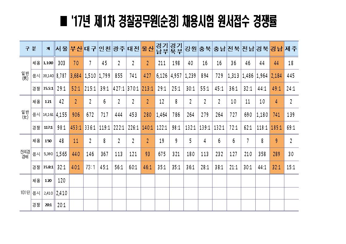 글제목 :      2017년 제1차 경찰공무원(순경) 채용시험 경쟁률