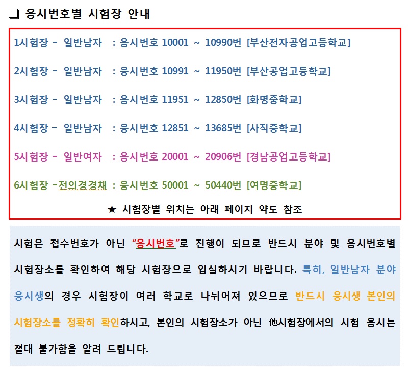<응시번호와 시험장을 꼭! 확인해주세요> |