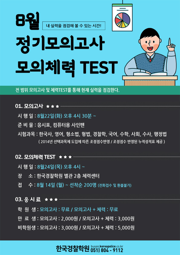 8월 모의고사 및 모의체력시험 접수 안내입니다.