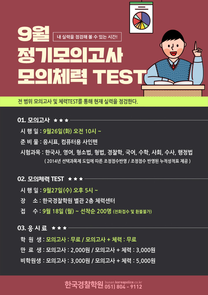 9월 모의고사 및 모의체력시험 접수 안내입니다.