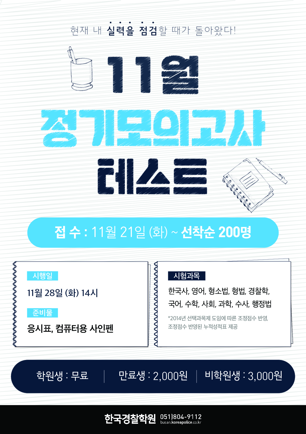 * 11월 정기모의고사/모의체력시험 접수 안내 *