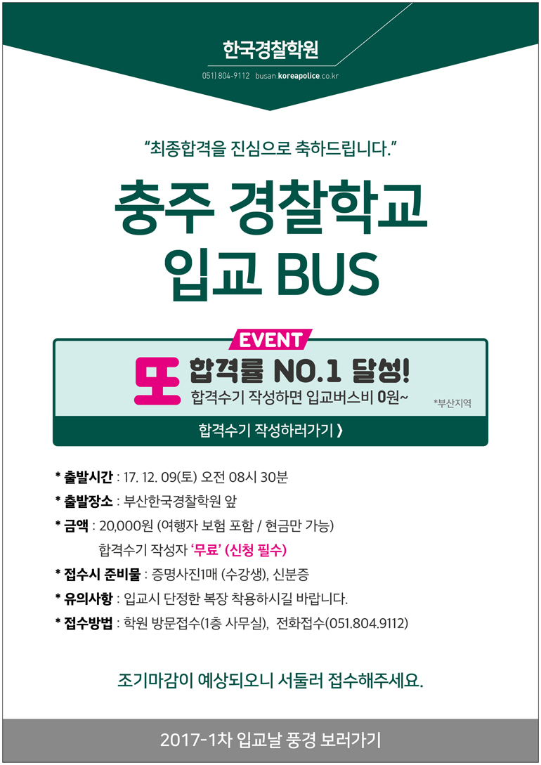 글제목 :      [안내] 2017-2차 최종합격생 충주경찰학교 입교버스