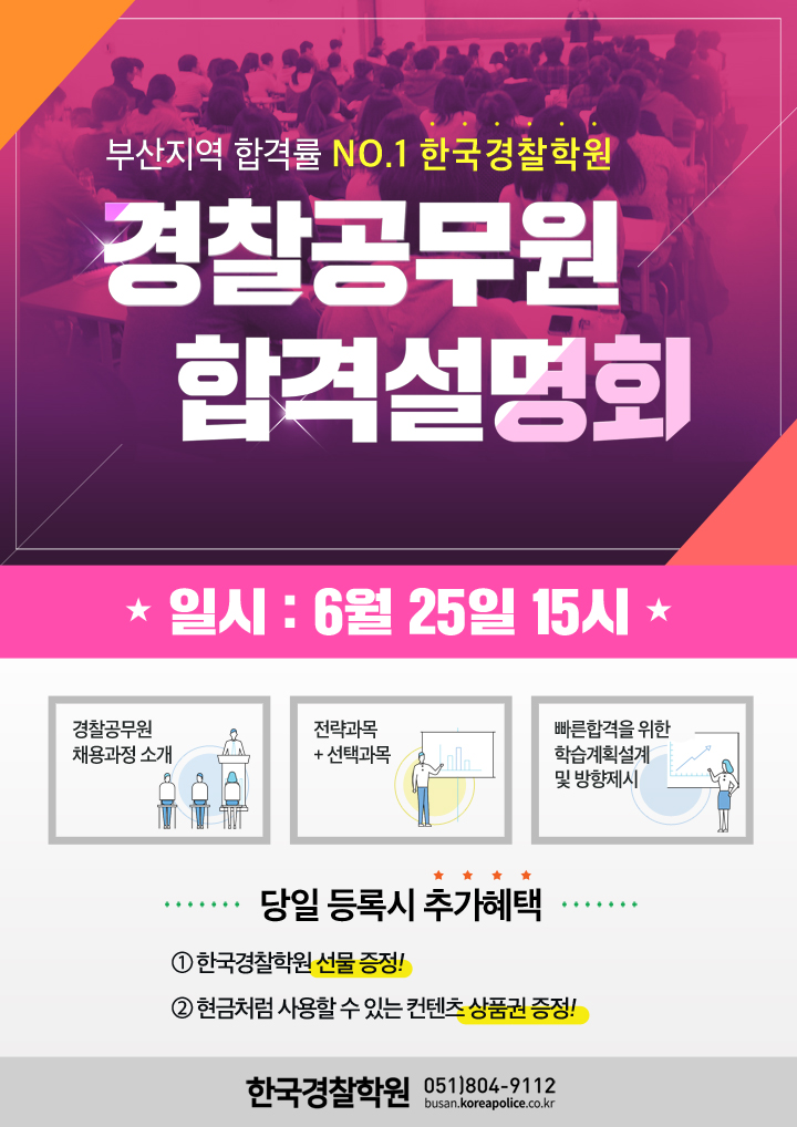 [안내] 부산 한국경찰학원 경찰공무원 합격 설명회(6월25일 월요일 오후3시)