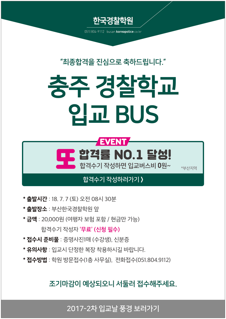 [안내] 2018-1차 최종합격생 충주경찰학교 입교버스