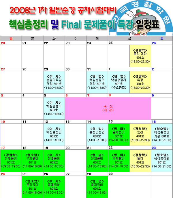 2008년 1차시험대비 1~2월 특강 일정표 |
