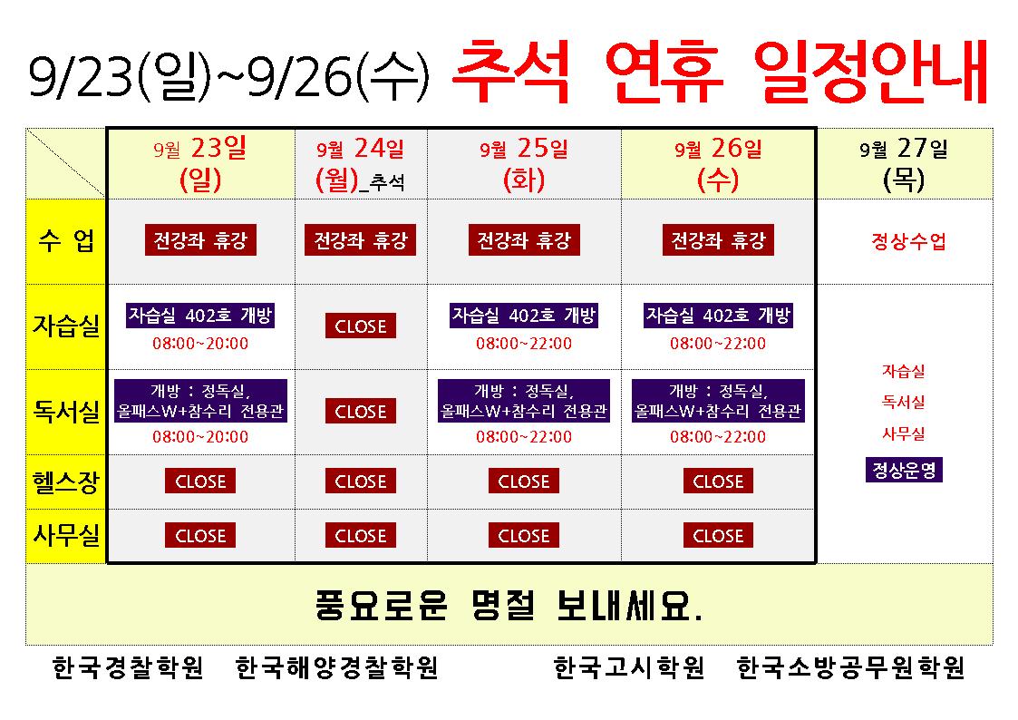 글제목 :      ★ 추석 연휴 일정 공지 ★