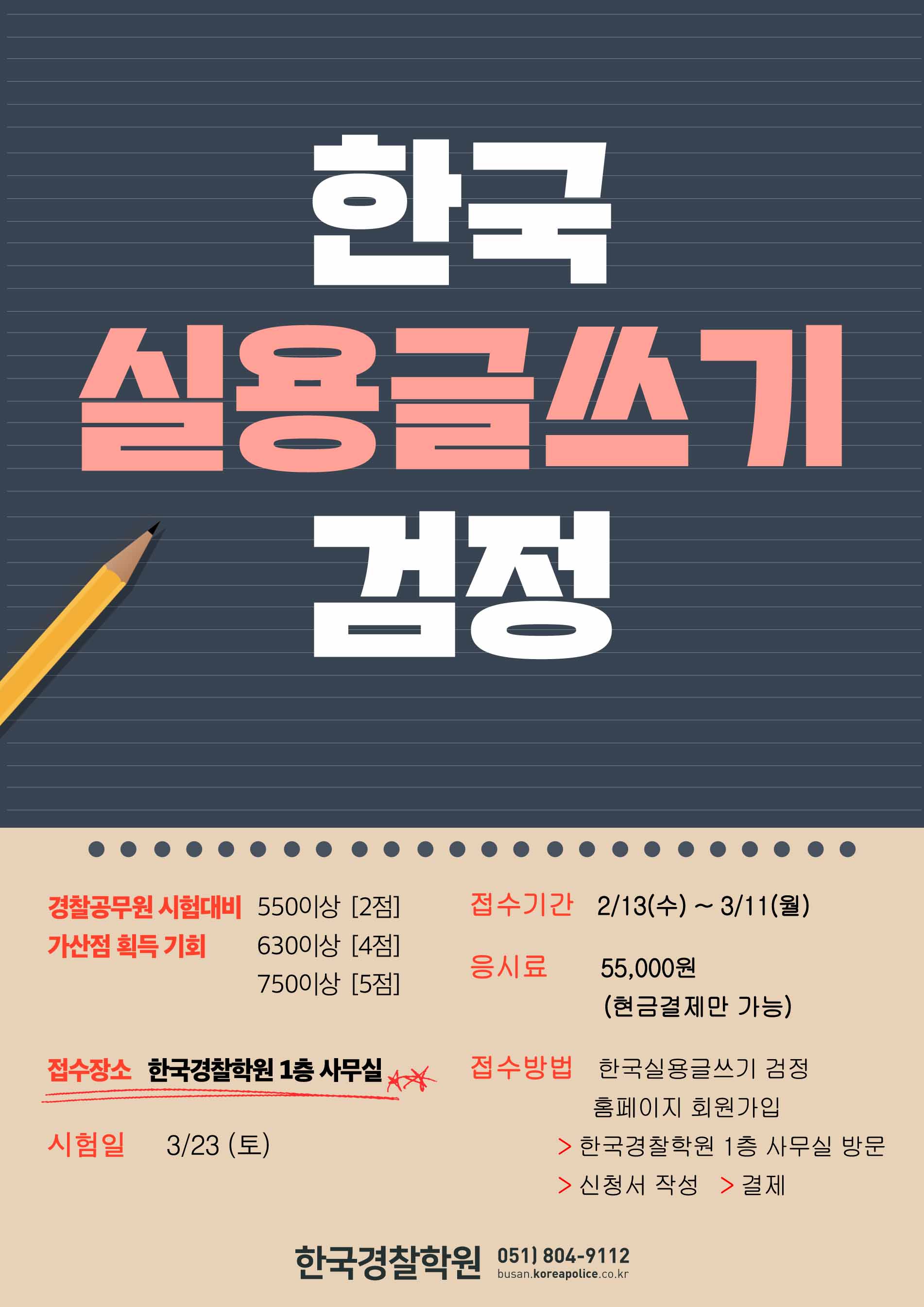 3월 23일 진행되는 한국실용글쓰기검정 시험접수를