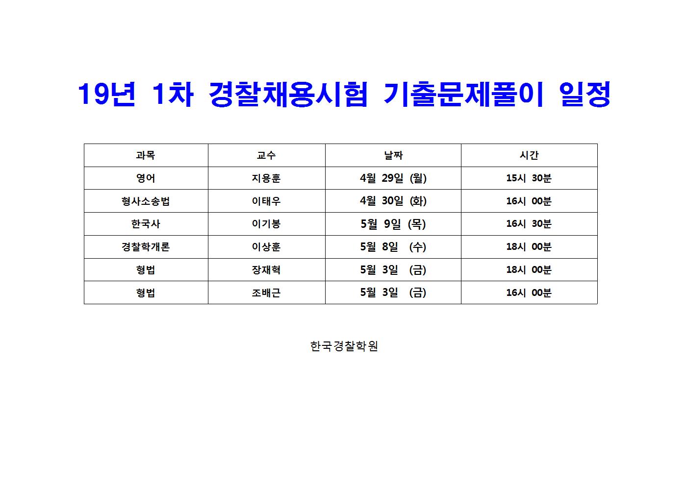 19년 1차 경찰채용시험 기출문제풀이 일정 |
