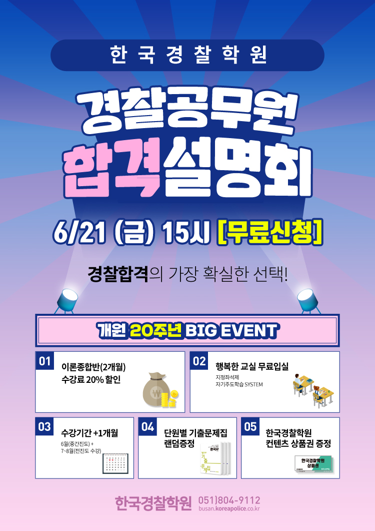 [안내] 부산 한국경찰학원 경찰공무원 합격 설명회(6월21일 금요일 오후3시)