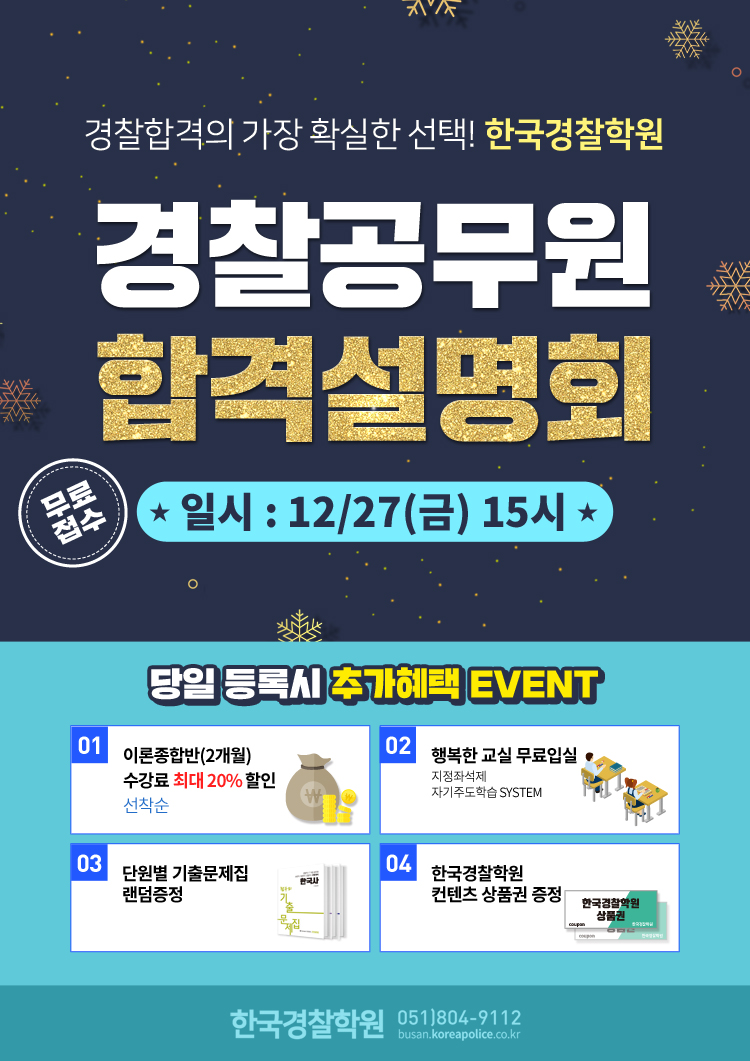 [안내] 부산 한국경찰학원 경찰공무원합격 설명회(12월27일 금요일 오후 3시)