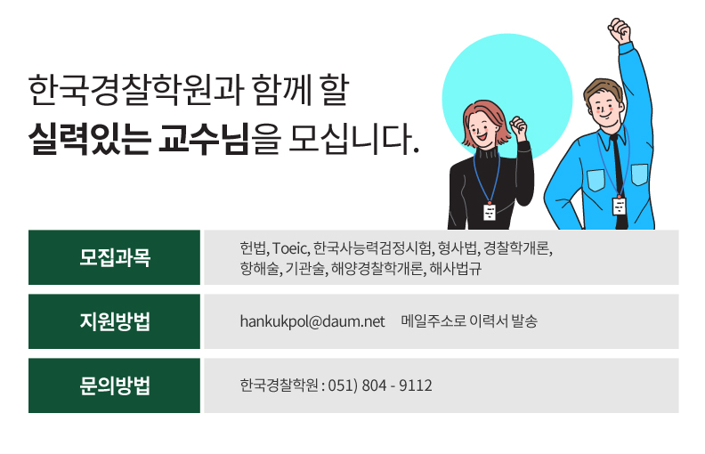 한국경찰학원과 함께 할 실력있는 교수님을 모십니다.