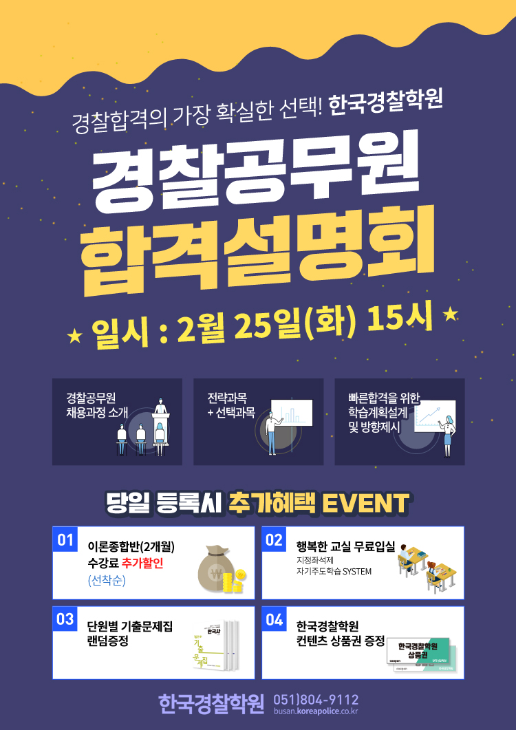 [안내] 부산 한국경찰학원 경찰공무원합격 설명회(2월25일 화요일 오후 3시)