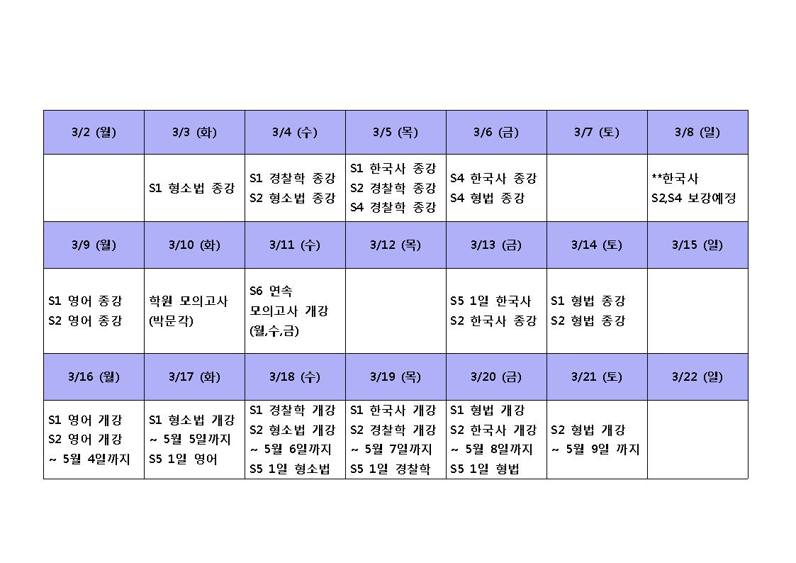 ***형법 기본이론반, 형법 문제풀이반 수업은 3월 6~7일 종강 되었습니다. |