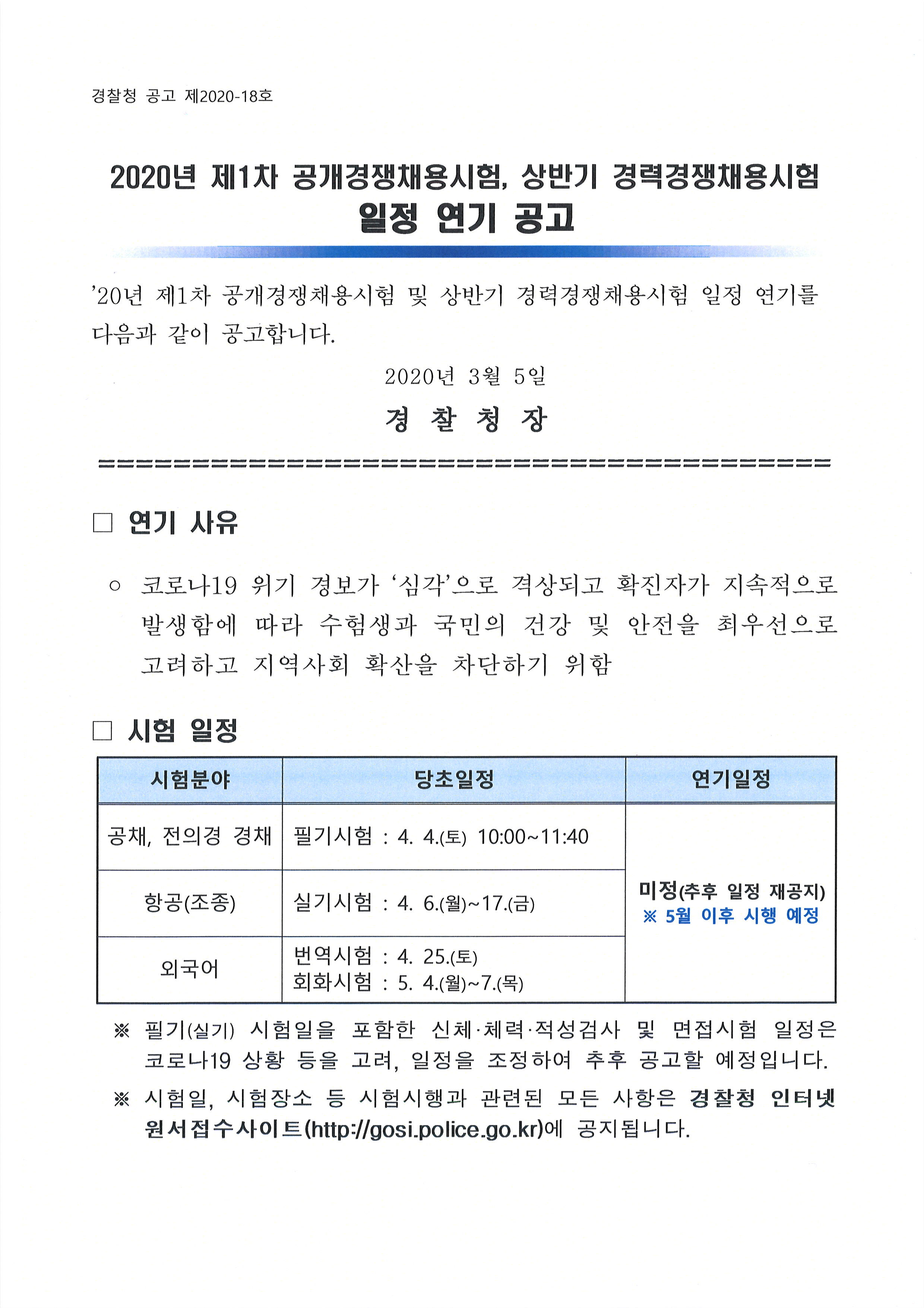 경찰청 공고 제2020-18호