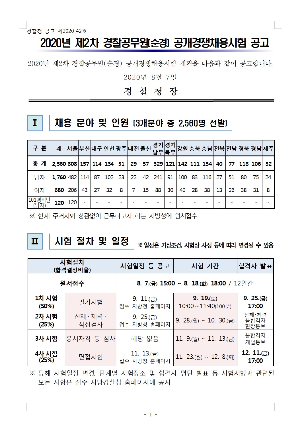2020년 2차 경찰공무원(순경) 공개채용시험 공고 |