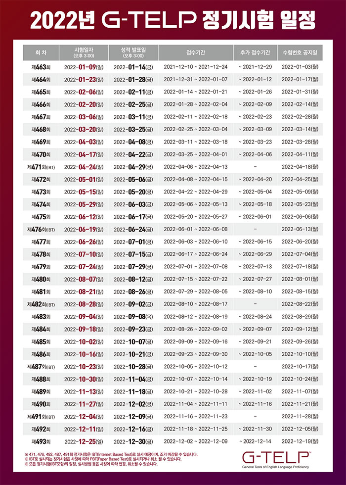 글제목 :      [공지] 2022년 지텔프 정기시험 일정